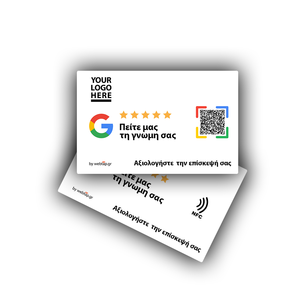 Χάρη στην τεχνολογία NFC και QR code, οι πελάτες σας μπορούν να αφήσουν θετική κριτική σε λιγότερο από 3 δευτερόλεπτα χωρίς καμία αναζήτηση ή εφαρμογή.
